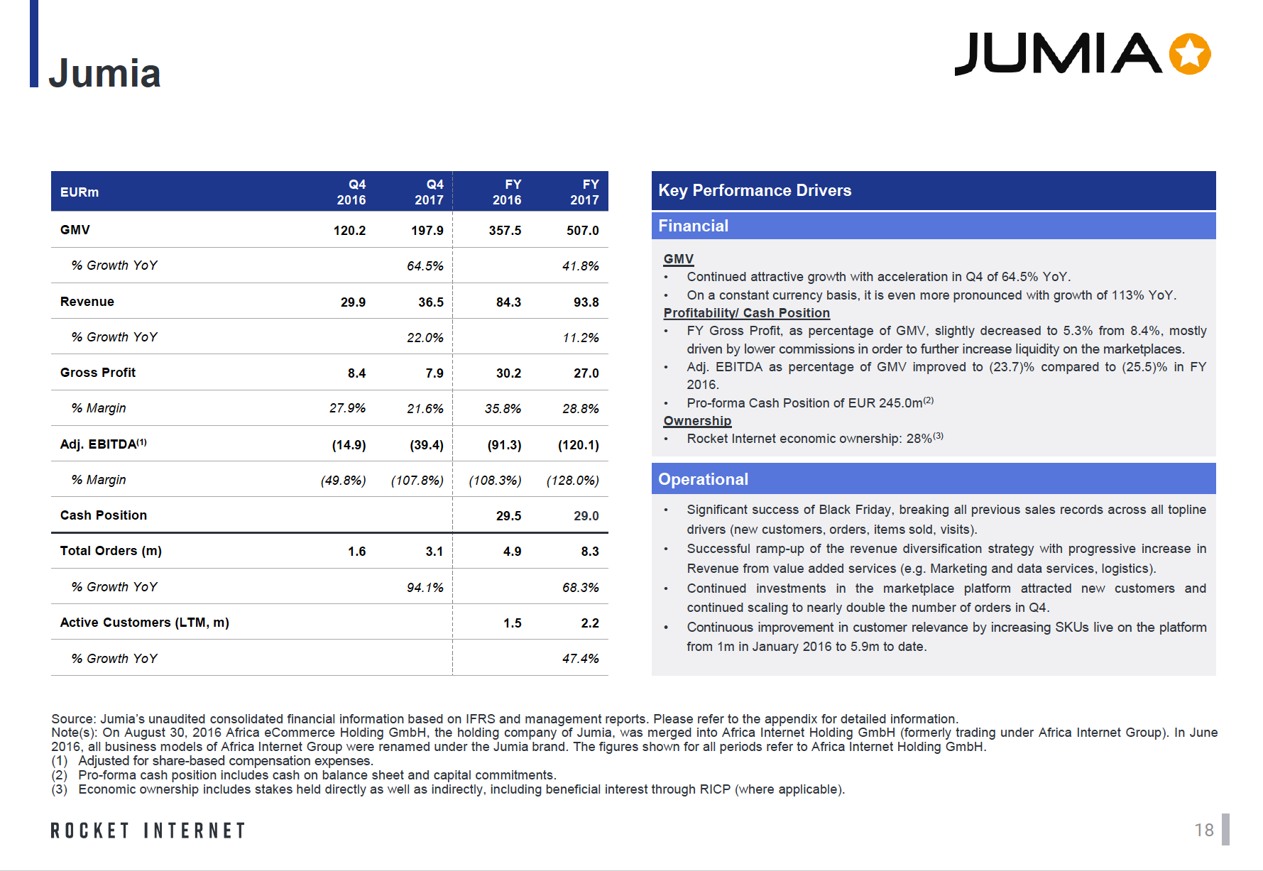 Jumia has raised $767m from some notable investors including MTN, Millicom. CDC. Axa.